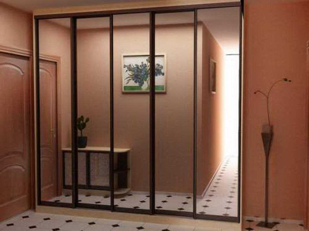 Фасады или двери для шкафов купе делают из разных материалов, обрамленных в рамку из профиля. Используют: