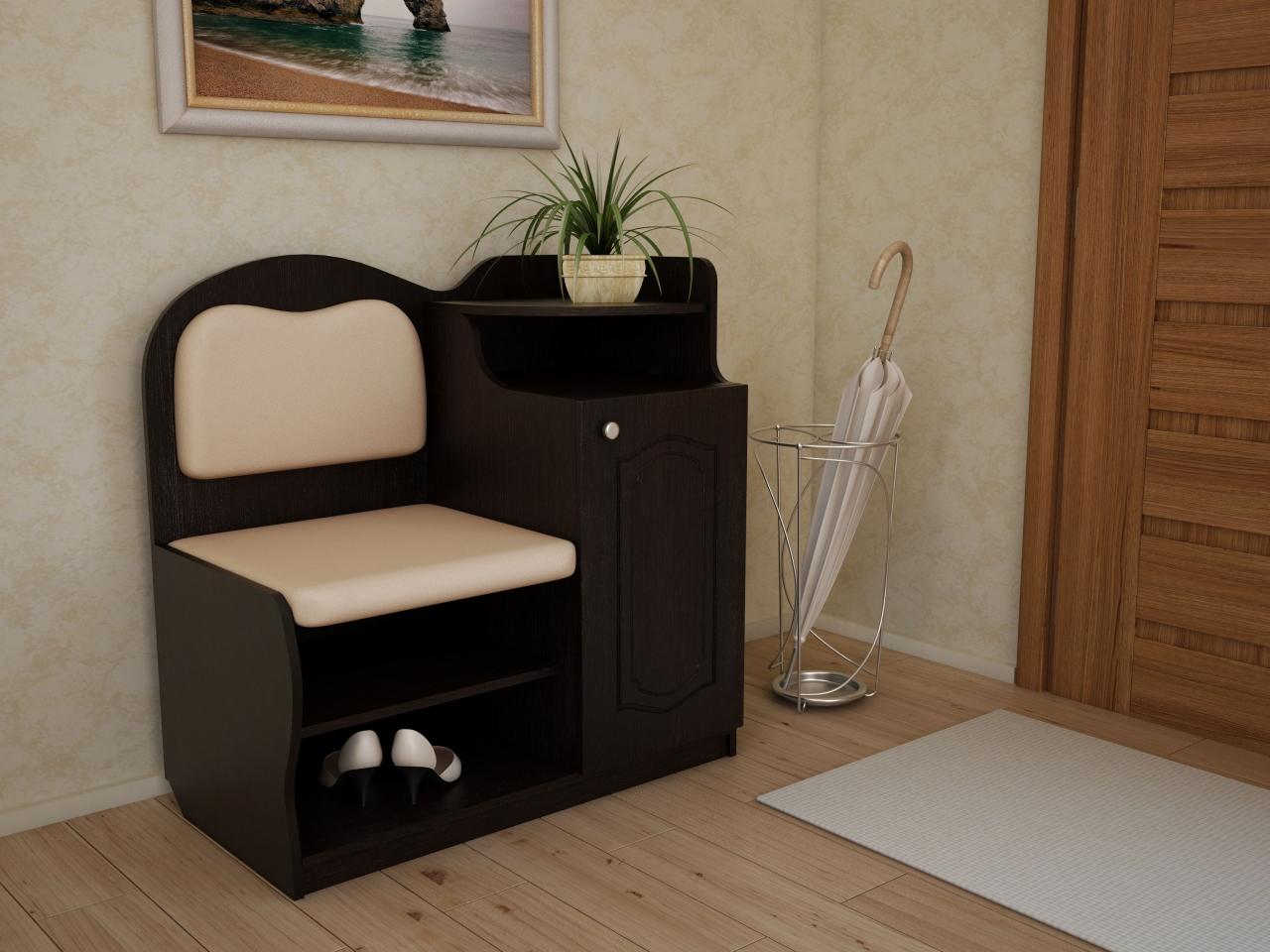 Кроме того, они бывают со спинкой и без неё, с подлокотниками и без них. Подлокотники могут присутствовать частично – либо только с одной стороны либо один полноценный, а второй немного уменьшен. Для прихожей подбирается исходя из размеров коридорной площади.