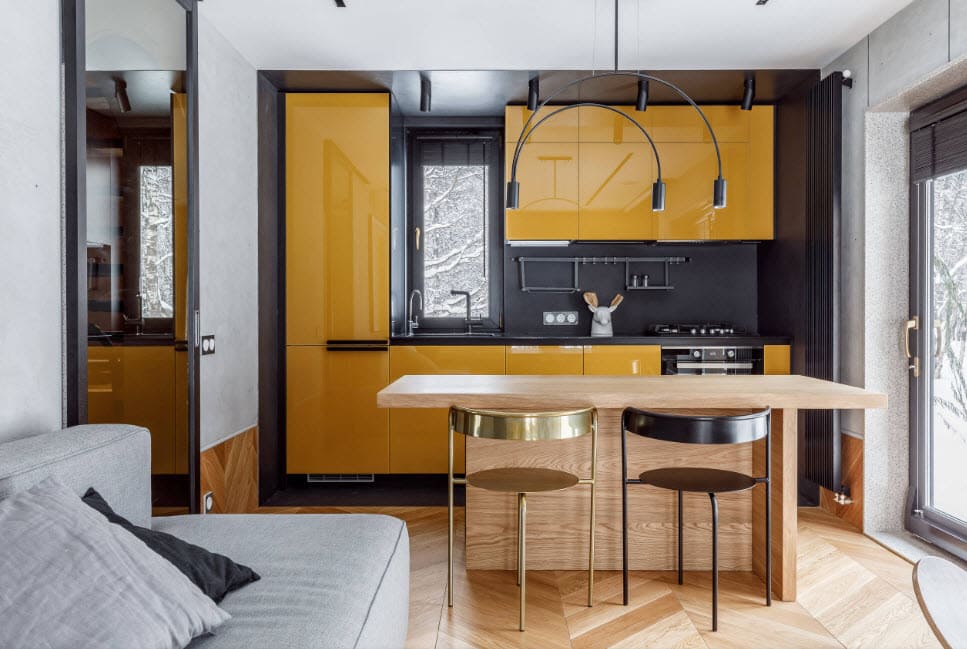 Если тебе наскучили бесконечные белые и бежевые интерьеры, но маленькую кухню все еще нужно оживить и наполнить светом – обрати внимание на желтый цвет. Теплый и уютный, он обогреет даже холодные комнаты на северной стороне дома