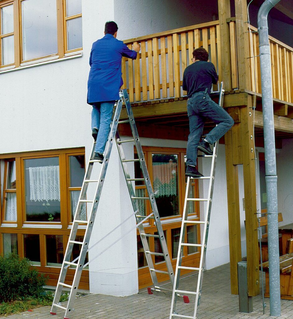 Последующие сегменты при необходимости раскладываются, создавая ровный лестничный марш, по которому и осуществляется подъём или спуск. К примеру, выдвижная трёхколенная лестница обеспечивает подвижность конструкции благодаря специальным механизмам, присутствующим в лестнице, в роли которых выступают особые петли и шарниры. Цена таких лестниц от 11 тыс. руб.