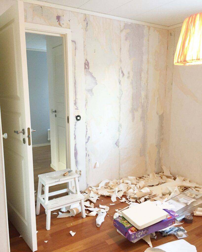 Качественно поклеенные обои имеют один недостаток – их не так-то просто снять, ведь они отходят от стены маленькими кусочками.