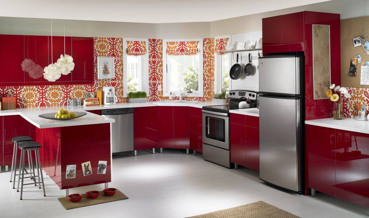 Поэтому рекомендуется не использовать красную краску как фоновую. На фото видно, как можно создать гармоничный интерьер кухни в красном цвете, сочетая его с другими тонами.