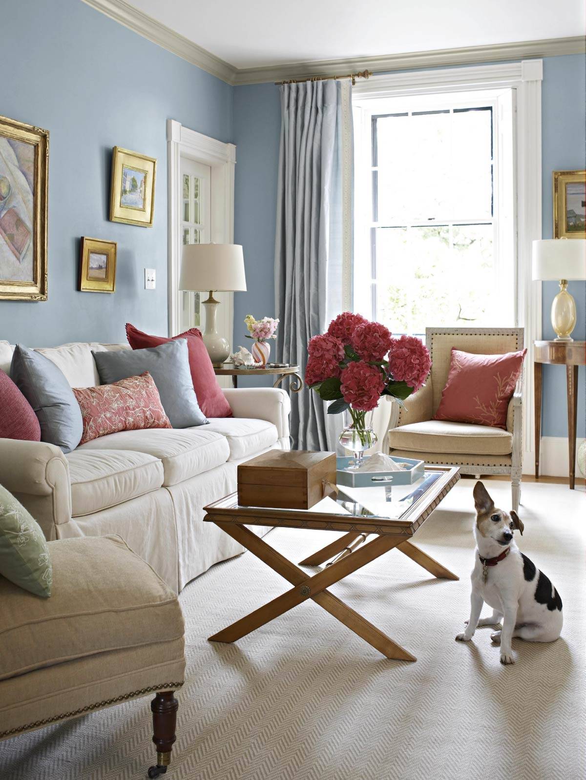 Если мебель василькового цвета, подберите к ней обои солнечного желтого или соломенного оттенка. Эта цветовая пара напоминает о лете, цветочном поле, солнечном небе и прекрасно подходит для воплощения стиля кантри.