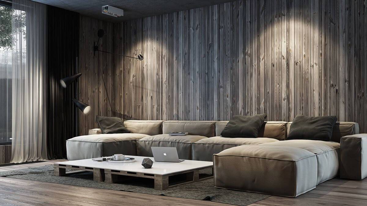 Для зрительного уменьшения пространства принято работать с коричневыми или темными цветами. Кроме того, от цвета отделки стен будет зависеть атмосфера в доме и ваше настроение: разные оттенки могут оказать позитивное или негативное воздействие. Определитесь, какие цвета вам нужны, агрессивные или успокаивающие оттенки.