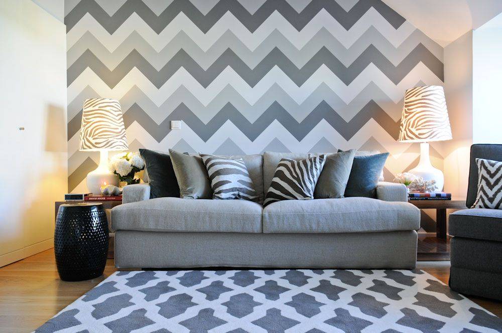 Современные обои в зигзагах, квадратах, треугольниках рекомендуются профессионалами для гостиной в 2022 году. Эффект от их использования вы можете оценить, посмотрев реальные фото.
