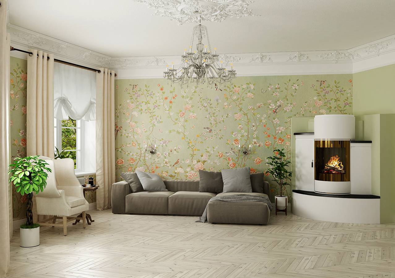 Стволы белых берез, голые и без листьев, прекрасно подойдут для комнат любителей скандинавского стиля. Если вы любите элегантность, вам понравится цветочный узор в стиле барокко.