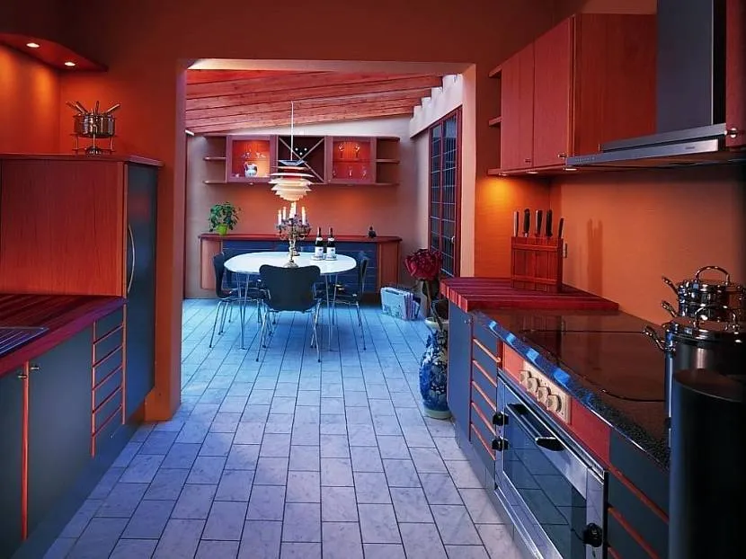 Небольшая кухня, оформленная с применением ярко-красных тонов, не дает возможности расслабиться, наоборот, способна усилить напряжение. Также не следует забывать, что красный цвет благоприятствует улучшению аппетита. В связи с этим людям, которые склонны к полноте, не следует отдавать предпочтение данному цвету на кухне, потому как это еще больше усложнит задачу контроля веса.