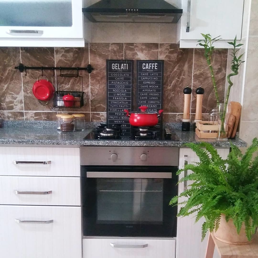 Красно-белая кухня всегда выглядит беспроигрышно.