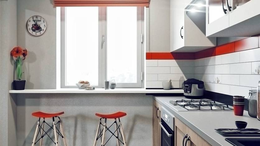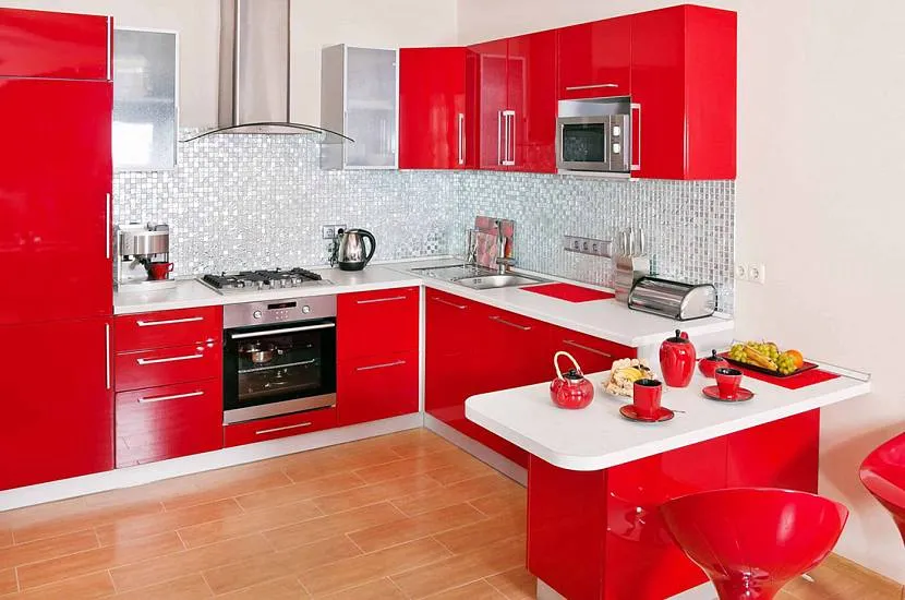 В интерьере маленькой кухни красный цвет лучше использовать только в качестве акцентов, которые не перегрузят пространство