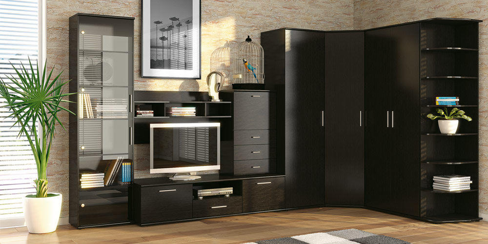 Стенка с угловым шкафом для гостиной: особенности стиля