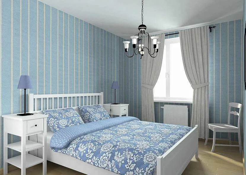 - Голубой. Холодный тон подходит для оформления комнат южного направления.