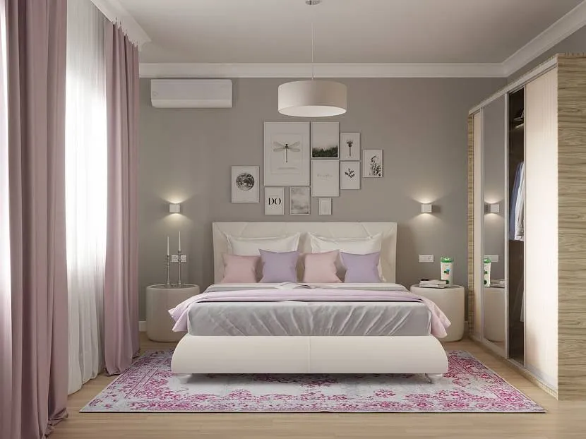 Очень важно правильно выбрать цветовую гамму комнаты. При выборе базового и дополнительного цветов отталкивайтесь от уровня природного освещения в комнате – если спальня залита солнечным светом, можно смело использовать светлые холодные оттенки: голубой, серый, мятный, пастельную бирюзу или светло-розовый