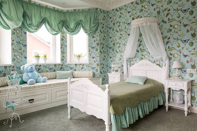 Зеленый. Благоприятная краска для детской, вызывает ассоциации с природой, снимает напряжение, дает отдых глазам, улучшает память. Хорошо комбинируется с оттенками бежевого, серого и коричневого. Светло-зеленую палитру дополняют желтым, бирюзовым, цветом лаванды.
