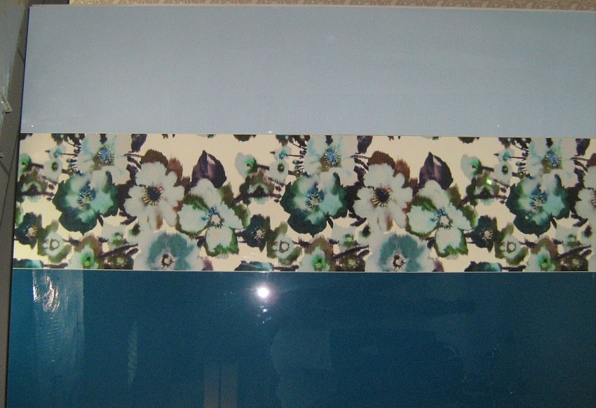 Под лаком высокоглянцевых панелей МДФ «скрывается» некий декоративный слой. Это может быть шпон (TABU, ALPI), декоративная пленка различных оттенков, с дополнительными слюдяными вкраплениями, блестками и перламутром для создания интересного эффекта, различные имитации под фактуру дерева, кожи и других материалов.