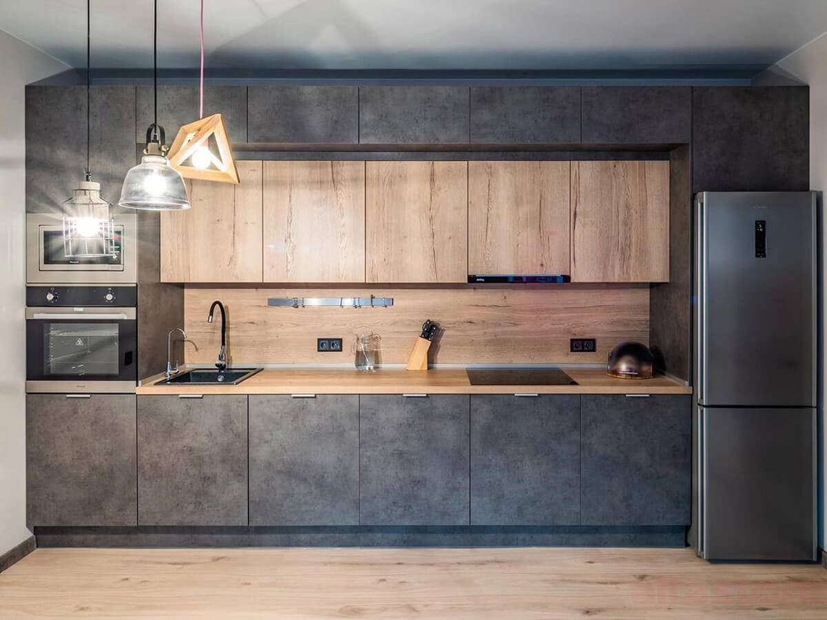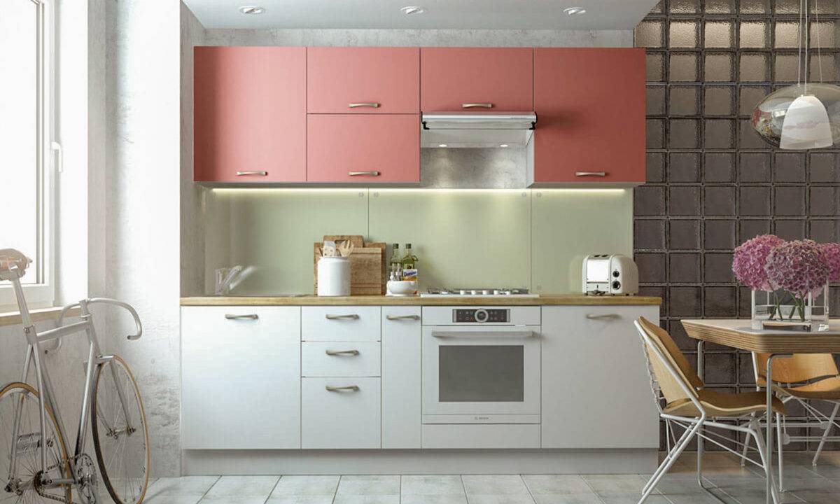 Линейный (прямой) гарнитур может быть небольшой длины (до 2,5 м) и компактно поместиться в маленькую кухню. Все находится на одной линии: раковина, кухонная плита, рабочая поверхность. Длинные гарнитуры (до 4 м) размещаются вдоль стены просторной кухни и освобождают место для большого обеденного стола и лаундж-зоны.