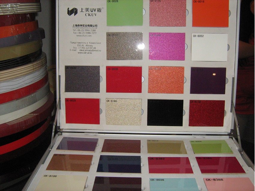 Когда говорят об высокоглянцевых акриловых панелях для изготовления фасадов, то имеют в виду сам тип покрытия. Основой служит плита МДФ.