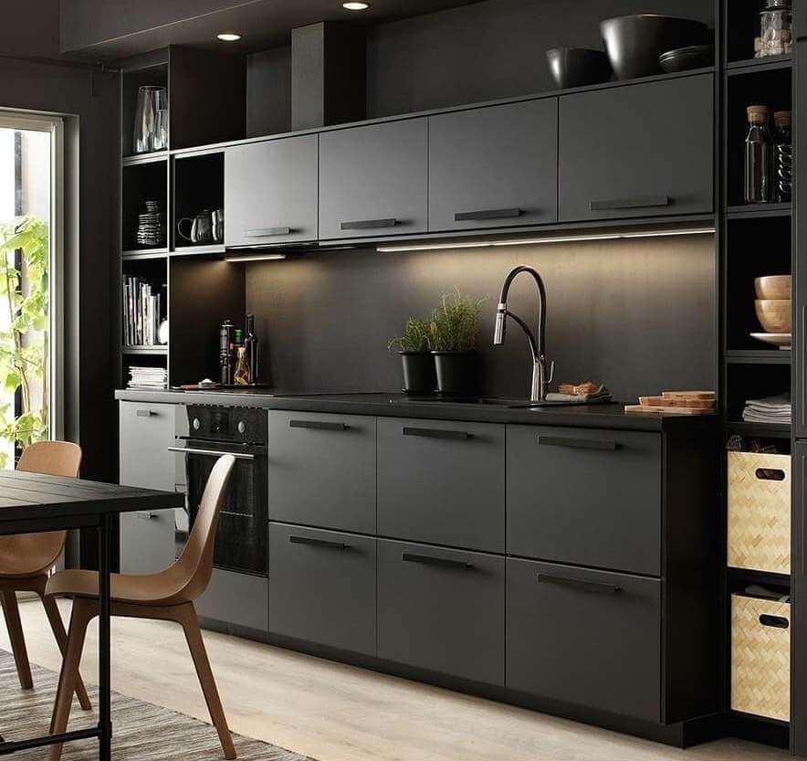 Поверхность непрозрачной мебели не отражает свет, а рассеивает его. Поэтому при недостатке естественного света на маленьких кухнях интерьер темных тонов выглядит мрачно.