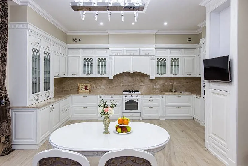 Белая угловая кухня в классическом стилеИсточник design-homes.ru