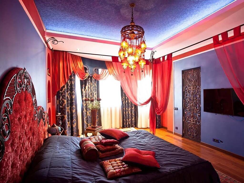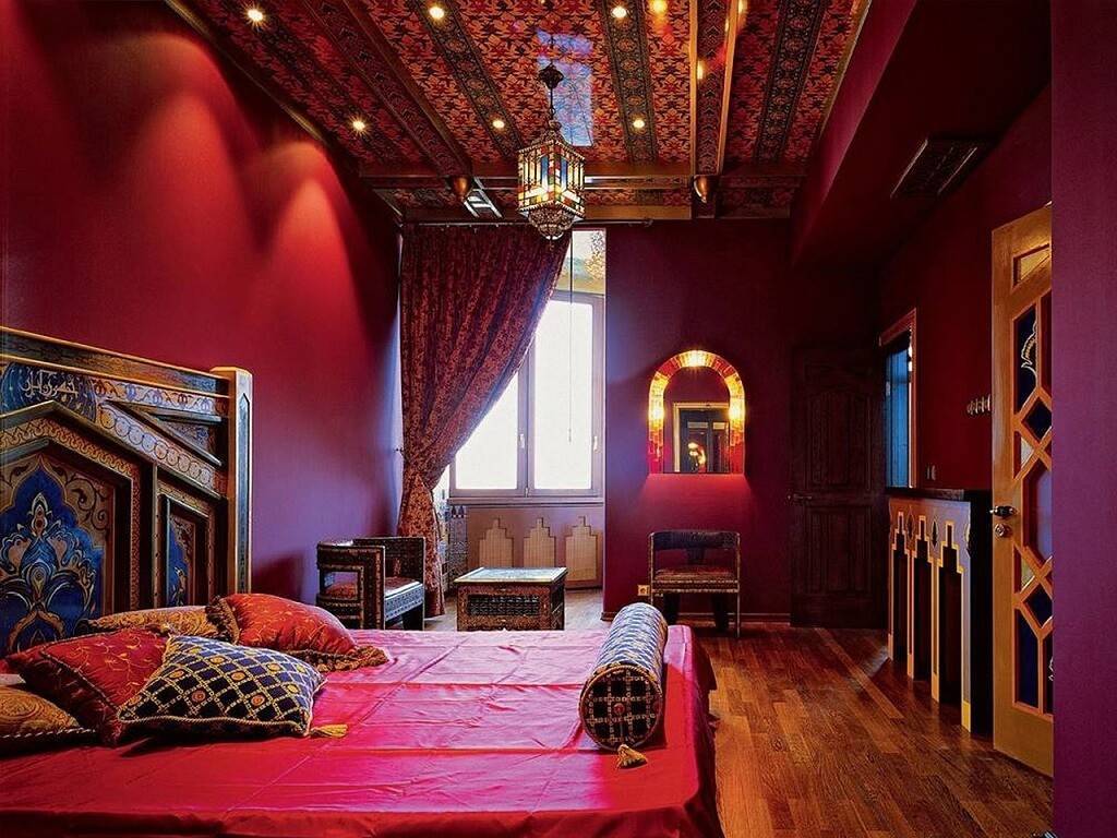 Это отдельно искусство – с яркостью и разнообразием важно не переборщить, иначе от уюта не останется и следа. Дело в том, что Восток любит красный цвет, который весьма негативно влияет на нервную систему и не способствует расслаблению после тяжелого трудового дня
