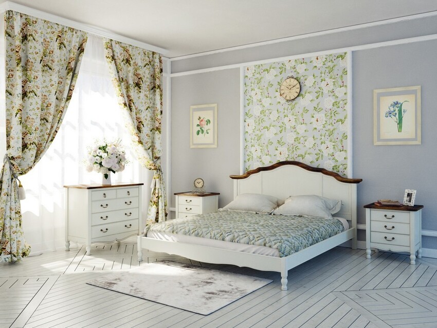 Прованс — самый романтичный из “натуральных” стилей, потому идеально подойдет для романтиков. Стиль отличается соединением простоты деревенских домов и в то же время старинного шика. Оформив спальню в стиле прованс, можно почувствовать себя жителем средневековой Франции.
