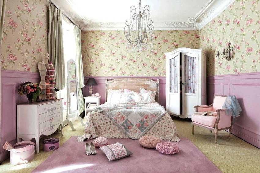 Самый распространенный вид настенного покрытия для прованского дизайна комнаты – обои.