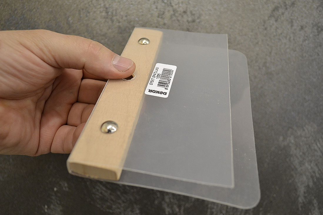 Состав наносят, как правило, резиновым шпателем, так как рабочая его часть очень пластичная.