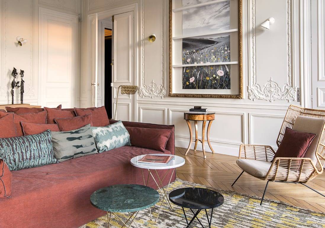 При этом особая «любовь» интерьеров в стиле нео-этно – это аксессуары. Они послужат завершающим штрихом в создании неповторимого стиля помещения. Для такого обилия деталей требуется нейтральный фон, поэтому «базой» может выступать минимализм или, например, классический стиль. Приглушенная палитра может соседствовать с этнической керамикой, пестрыми индийскими шелками и массивной мебелью из грубо обработанного дерева, пластичной африканской скульптурой и эффектной графикой на стенах с элементами геометрии. Такие детали, как мозаика с перламутром и позолотой или подушки с растительным орнаментом, будут сочетаться с металлом и стеклом, свойственными хай-теку, спокойствием классического стиля и простотой интерьеров в духе минимализма.