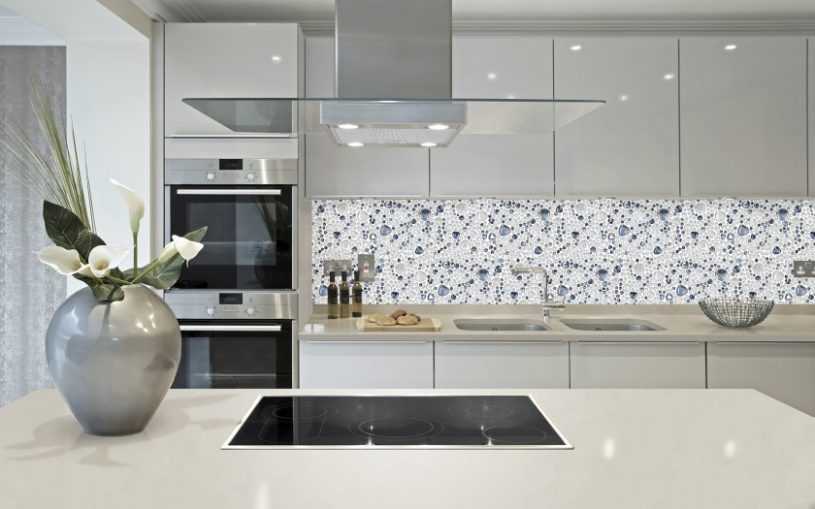 Есть еще один вид керамической плитки — с фотопечатью. На керамическую поверхность перед обжигом наносят специальными чернилами рисунок. После он покрывается глазурью и закрепляется при высокой температуре в печи. По этой технологии можно нанести даже фотографии, но для кухонных фартуков чаще выбирают фрукты или цветы.
