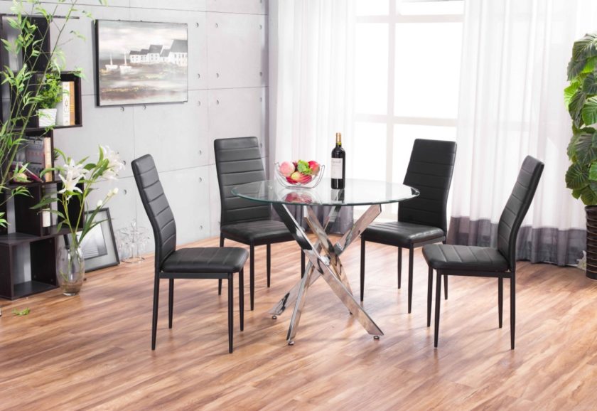 Главную роль при выборе обеденной зоны играет форма столешницы, цвет стекла, материал и форма ножек. Если кухня или столовая оформлены в каком-то определенном стиле, нужно и этот предмет мебели выбирать в том же ключе.