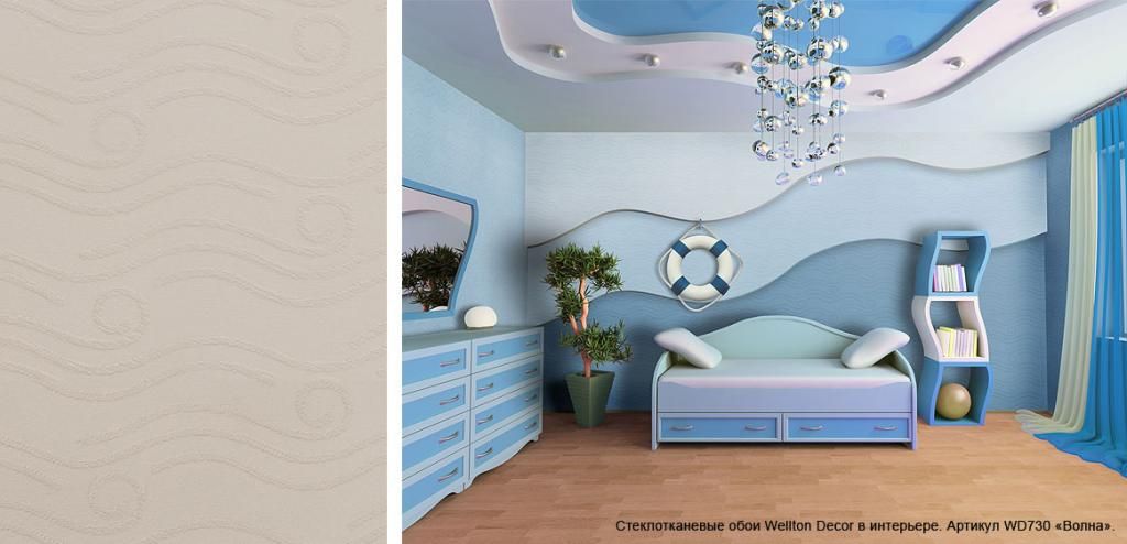 Узор.Для потолка нужны гладкие обои — паутинка. Для стен узор выбирается в зависимости от вкуса хозяев («рогожка», «елочка», «капли»). При этом рисунок с большей глубиной можно перекрашивать большее количество раз — узор сохранится.