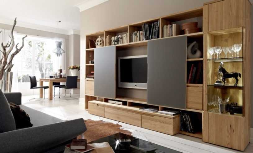 Выбор фактуры мебельного модуля ограничивается только желанием хозяина. В зависимости от интерьера квартиры и особенно гостиной, также выбирается стиль модуля. Чаще всего выбирают мебель с имитацией дерева разных пород.