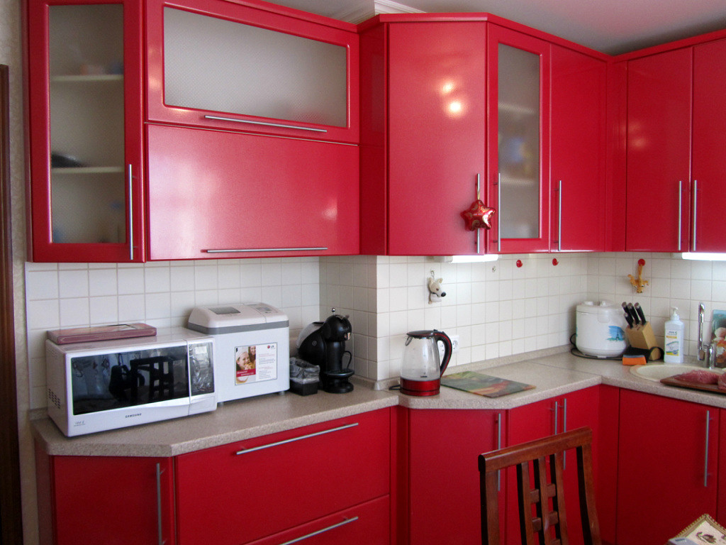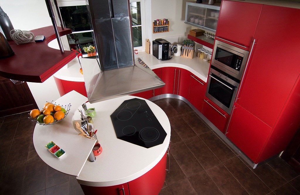 Те, кто хотят сделать кухню выразительной и яркой, выбирают обычно кухни из пластика красного цвета. Они действительно смотрятся экспрессивно, нарядно и стильно.