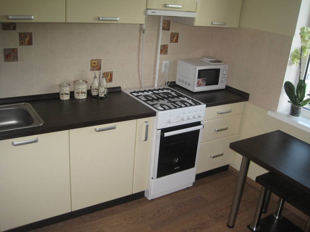 Также считается универсальным бежевый цвет, который дарит помещению тот же праздничный эффект, что и белый цвет. Кухня из бежевого пластика красиво смотрится на фоне темных стен и темного фартука.