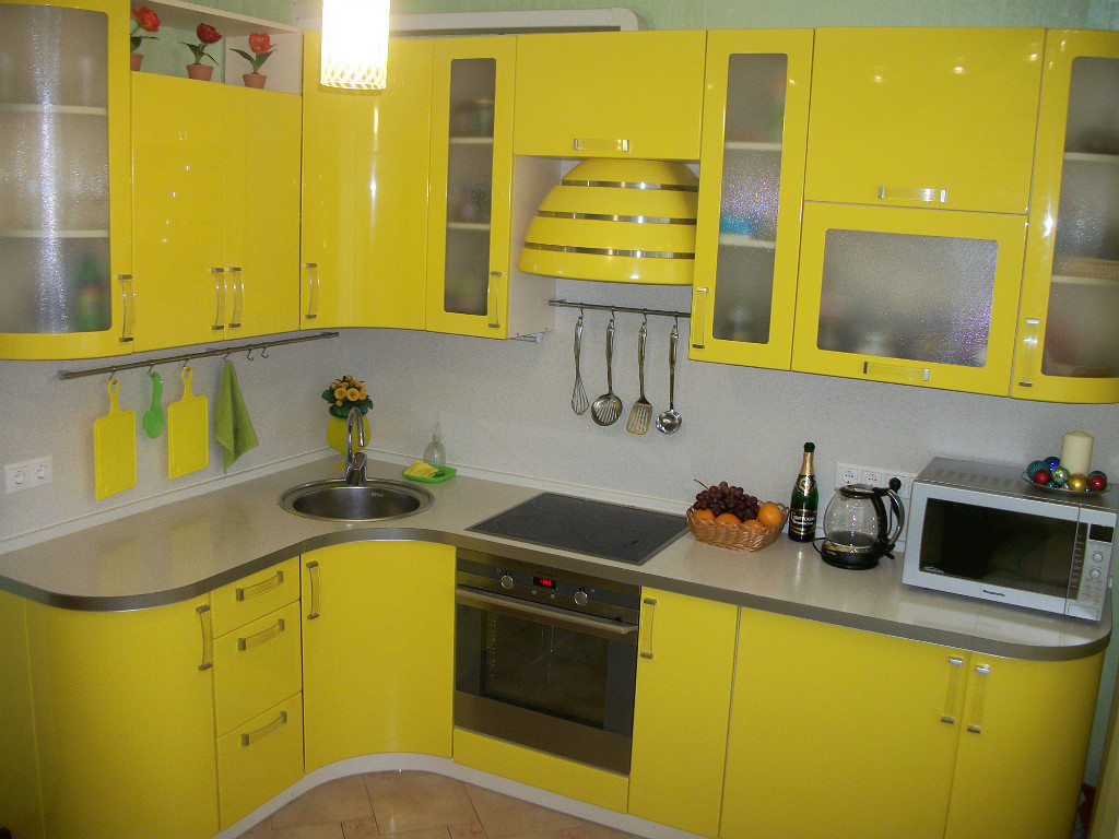 Совет! Для маленькой угловой кухни из пластика яркие фасады выбирать не стоит, так как насыщенные цвета будут визуально уменьшать помещение.