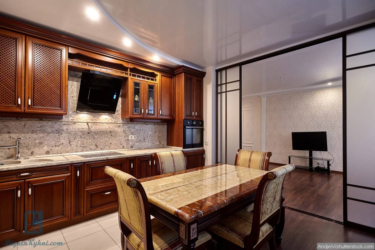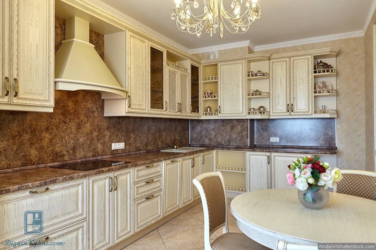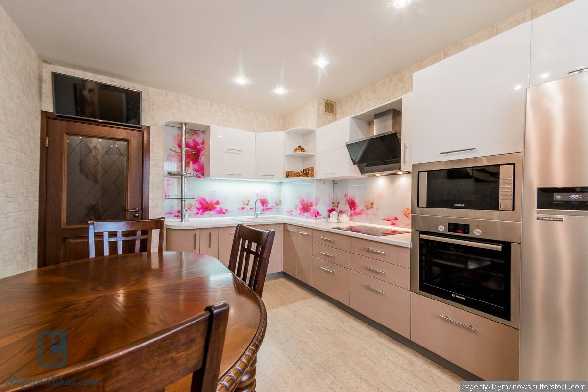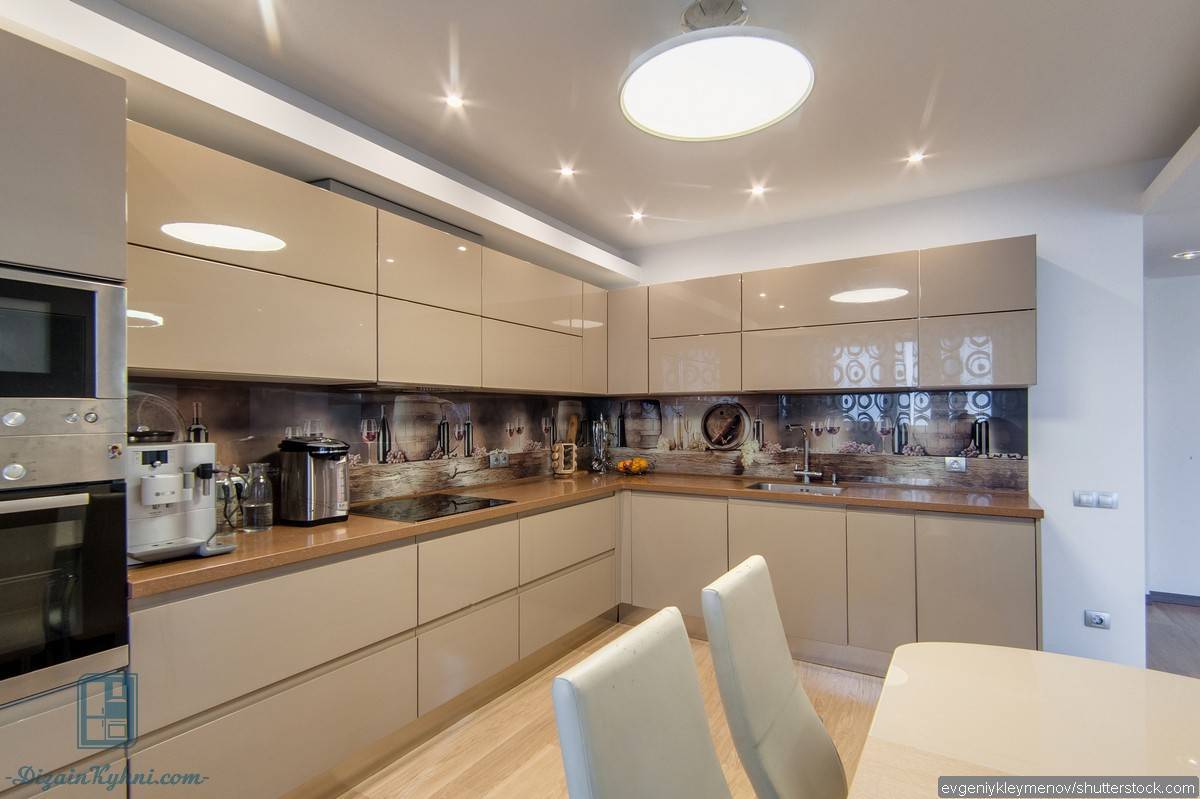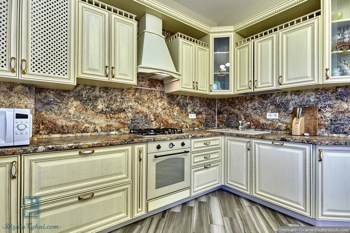 Материал отделки подбирается с учетом идеального сочетания со столешницей и фасадами кухонной мебели, с цветом обеденного стола и элементами декора.