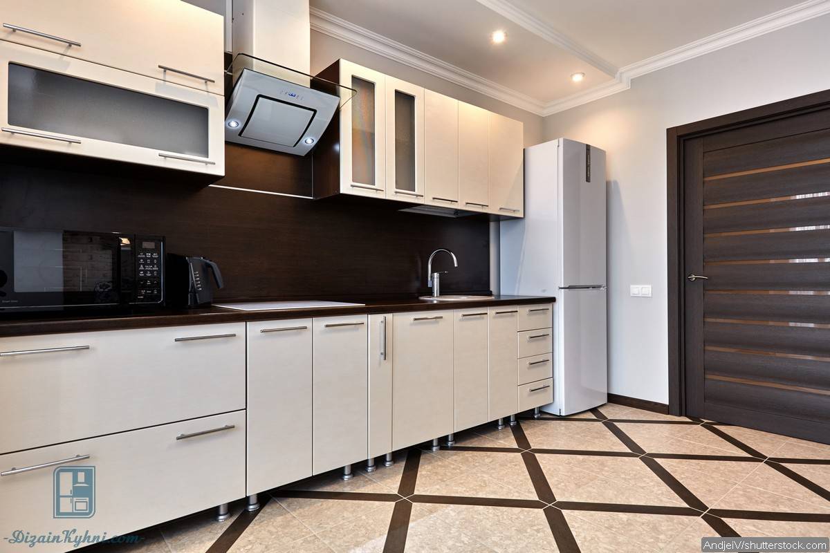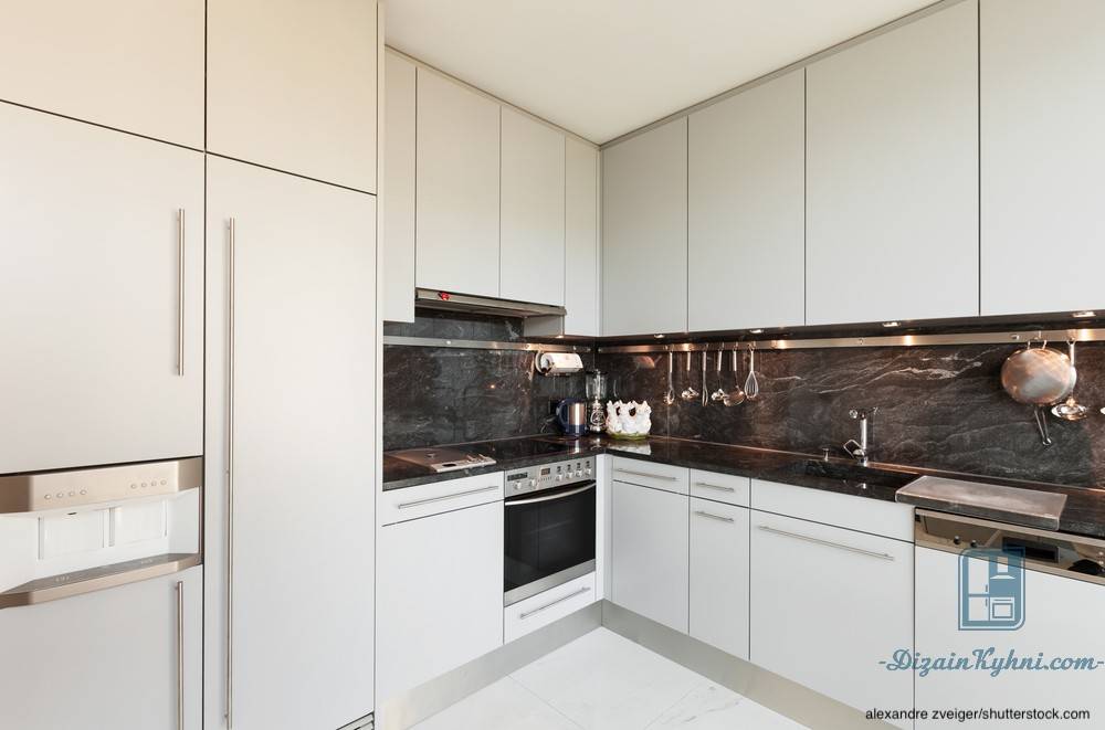 Может быть, вы хотите темную кухню, но размер комнаты этого не позволяет. В этом случае пусть базовый цвет будет белым, а фартук и рабочее пространство — черными. С этим решением вы сохраните ощущение пространства и удовлетворите свои потребности.