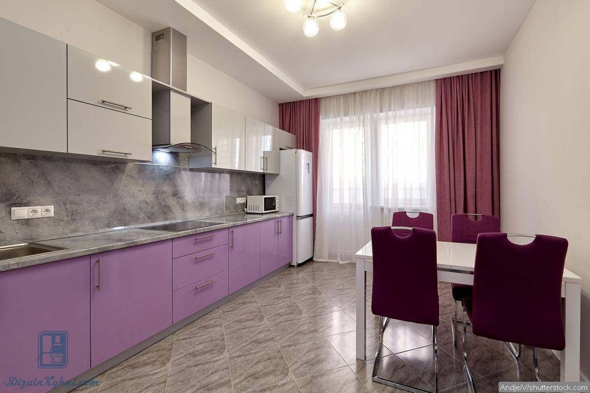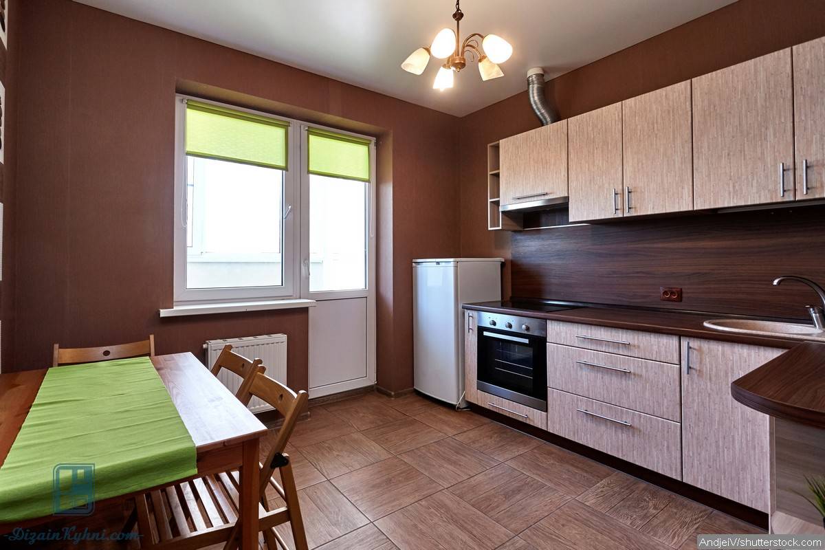 - Дизайн и цветовые решения лучше всего выбирать в соответствии с размерами и площадью кухонного помещения. Для кухни небольшой площади можно использовать светлую основу или рисунки в мелких цветах. Идеально будет смотреться однотонная поверхность, а также имитация древесины с матовой поверхностью.