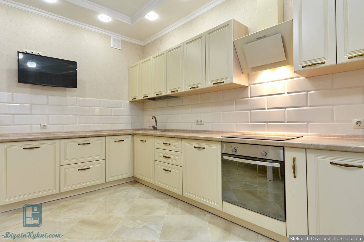 Для классического белого фартука используйте керамическую плитку. Более интересный вариант — имитация кирпичной стены, особенно если рабочая зона оборудована дополнительным освещением.