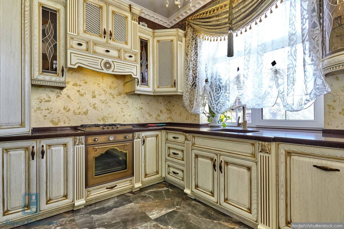 Настенное панно под керамогранит прекрасно смотрится в классическом интерьере с большим количеством мебели и техники. Используя панно светлого оттенка и с рисунком, можно имитировать на кухне прованский стиль.