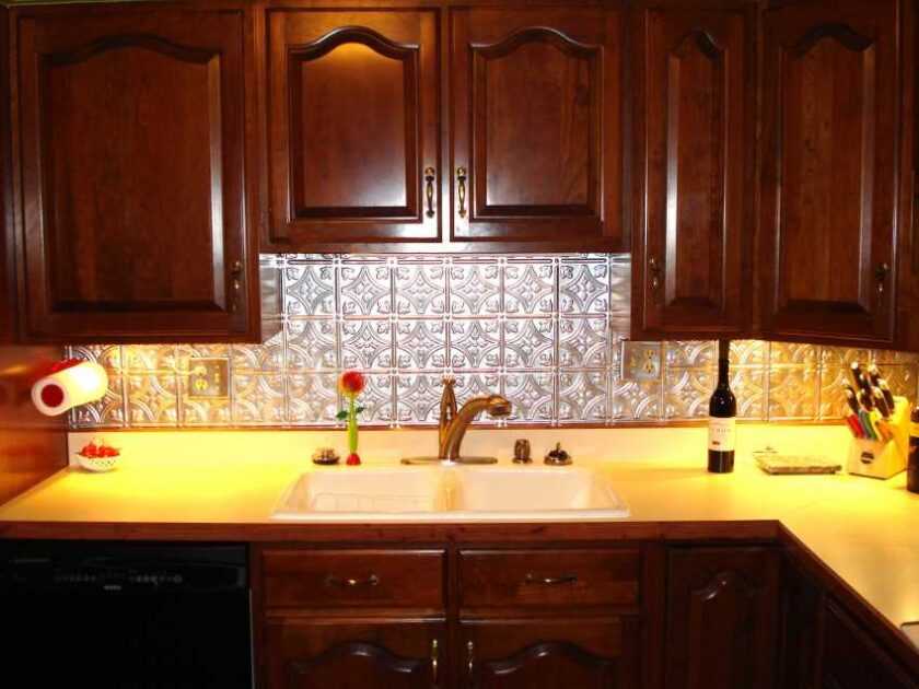 - Размеры панелей должны быть немного больше зоны фартука, чтоб они могли заходить за кухонные шкафы, мойку, плиту.