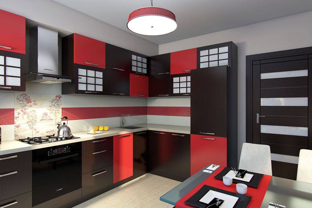 Красный и его множественные оттенки символизируют праздник, удачу и приятные эмоции, поэтому представить себе подобную кухню без всевозможных красных деталей просто невозможно.