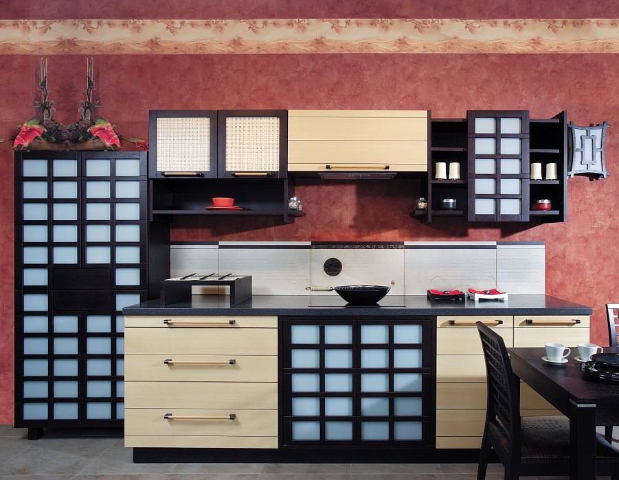 Следует добавить, что вне зависимости от размеров комнаты важно, чтобы кухонная мебель в японском стиле была как минимум максимально функциональной. Благодаря этому даже небольшая кухня визуально станет больше, чем есть на самом деле