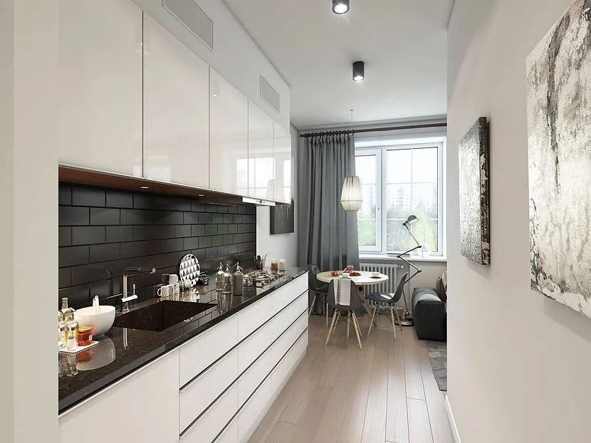 Черно-белая кухня с отдельной столовойИсточник dekordoma.net