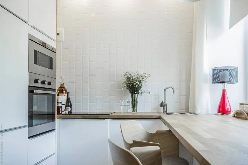 Стильное оформление небольшой кухни в беломИсточник gwdesign.com.ua