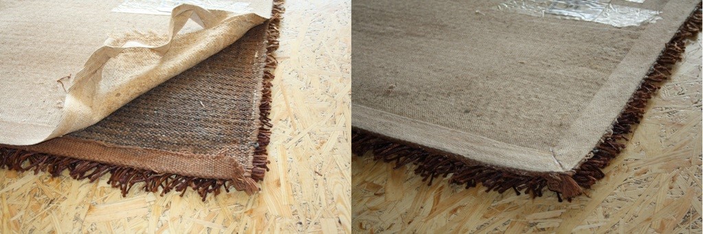 - Стоит помнить, что неотделанная кромка со временем может начинать «лохматиться» и расплетаться. Решения у этой проблемы два – обратиться к мастеру в ателье или пошивочный цех, и выполнить декоративную отделку кромок изделия. Также, после укладки можно поставить раскладку между элементом ковра и остальной части пола. Однако, при таком подходе, покрытие теряет свою практичность, так как скрутить в рулон и выбить его вне дома будет уже сложнее.