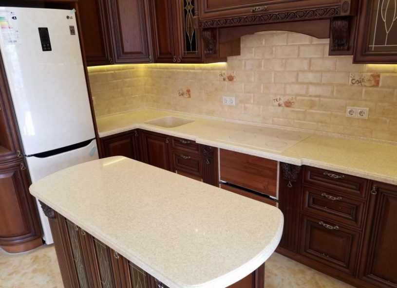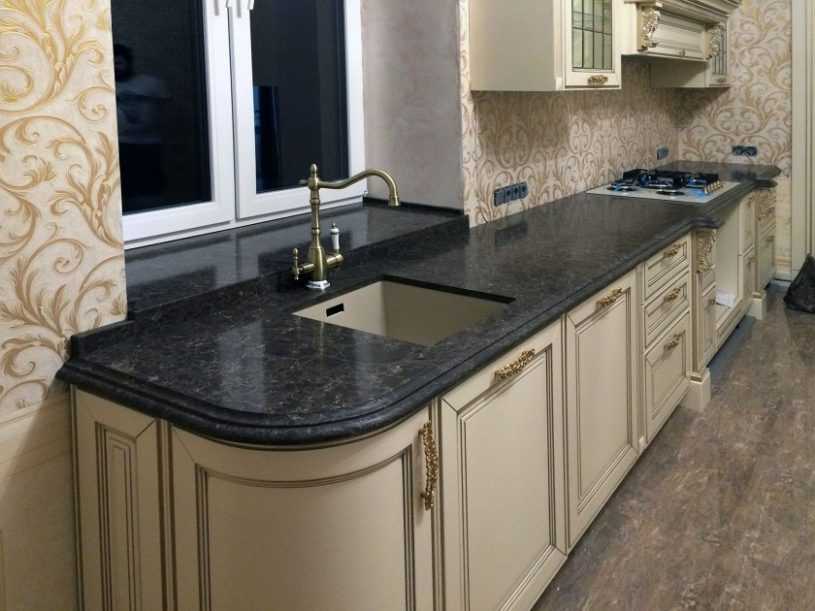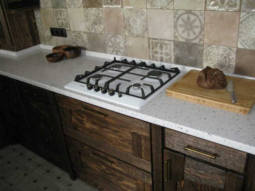 Столешница из альмандина на кухне отличается особой прочностью и устойчивостью перед высокими температурами.