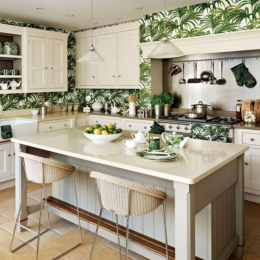 Белые обои – не лучший выбор для кухни, даже если это моющийся винил или флизелин. Оформи рабочую зону плиткой, а для остальных стен возьми моющуюся белую краску. С нее легко снять жир и грязь, а если не удастся отмыть какое-то пятно – достаточно просто незаметно закрасить поверх.