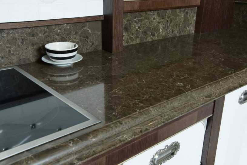 Каменная рабочая поверхность отличается не только дороговизной и износостойкостью, но и уникальным рисунком, который не повторяется дважды.