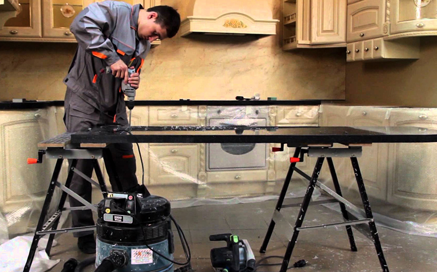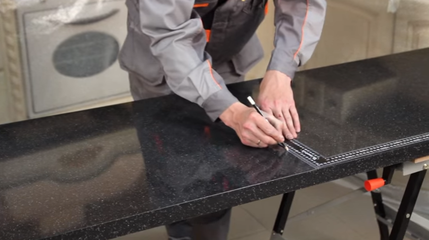 Так как столешница может быть выполнена не только в виде монолитной плиты, важно внимательно отнестись к стыковке деталей материала.