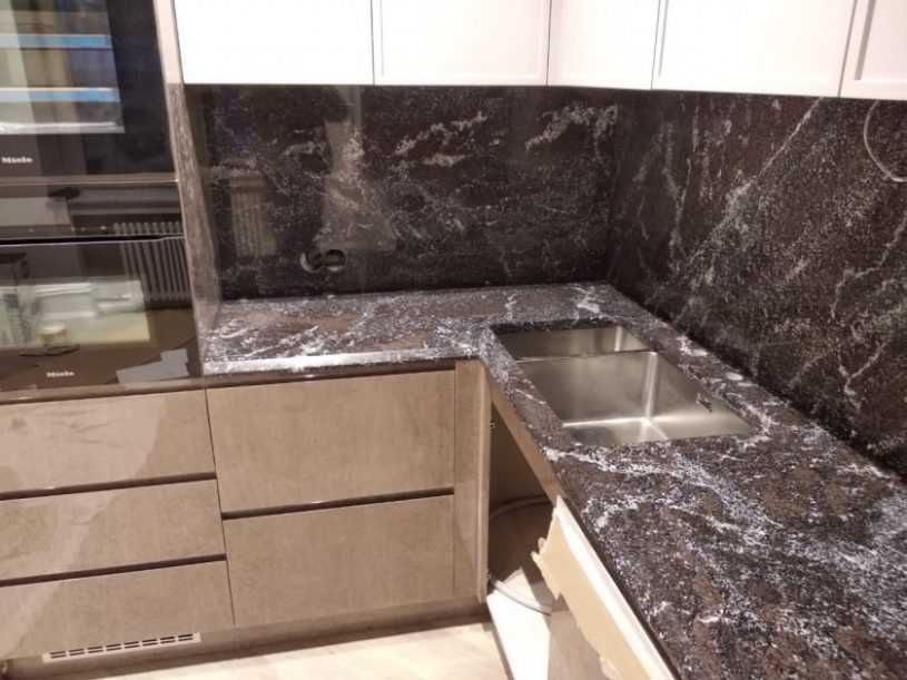 При изготовлении кухонной столешницы используется натуральный камень, который считается одним из лучших материалов. К плюсам материала относятся: